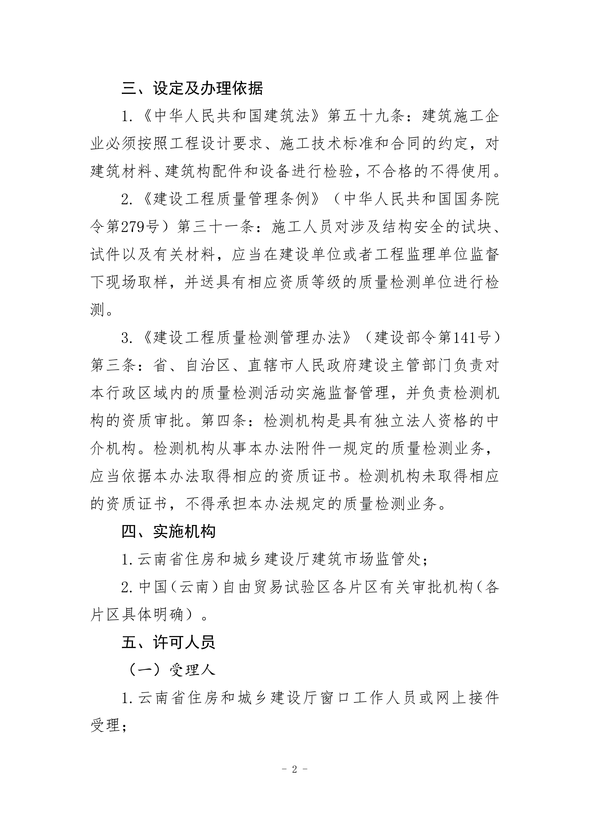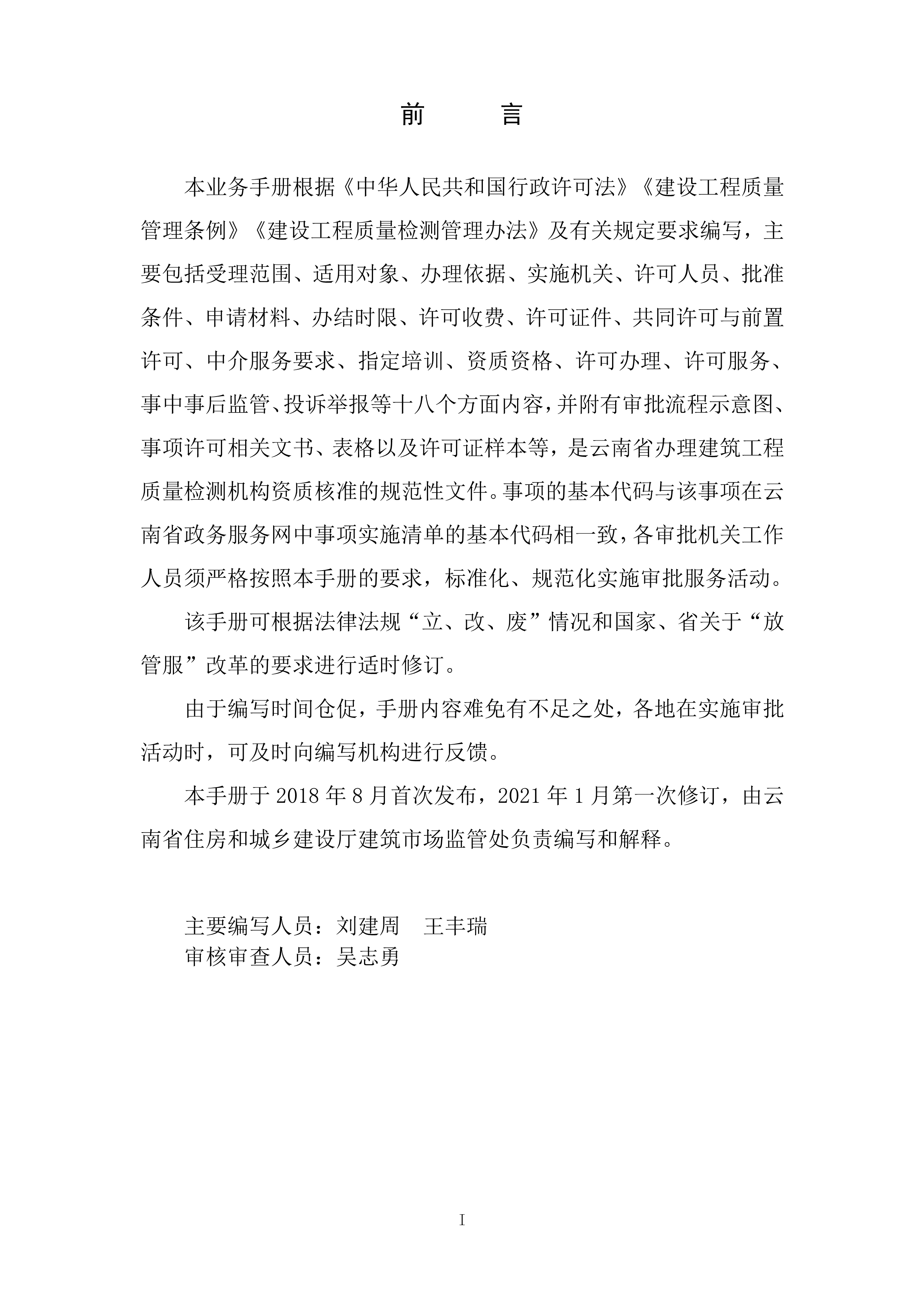 根據(jù)《云南省人民政府關(guān)于調(diào)整482項涉及省級行政權(quán)力事項的決定的通知》(云政發(fā)〔2020〕16 號)、《云南省人民政府關(guān)于調(diào)整112項涉及州級及以下行政權(quán)力事項的決定》(云政發(fā)〔2020〕21號)、《云南省人民政府辦公廳關(guān)于公布云南省省級政務(wù)服務(wù)事項(2020年版) 的通知》(云政辦發(fā)〔2020〕39 號)、《云南省人民政府關(guān)于向中國(云南)自由貿(mào)易試驗區(qū)各片區(qū)管委會下放第一批省級管理權(quán)限的決定》(云政發(fā)〔2020〕34號)等文件精神,省住房城鄉(xiāng)建設(shè)廳于2021年1月20日對涉及省級下放自貿(mào)區(qū)各片區(qū)的“建筑施工企業(yè)安全生產(chǎn)許可證核發(fā)”等9項政務(wù)服務(wù)事項辦事指南和業(yè)務(wù)手冊進(jìn)行了編寫或修訂,現(xiàn)將“建設(shè)工程質(zhì)量檢測機構(gòu)資質(zhì)核準(zhǔn)業(yè)務(wù)手冊和辦事指南(完整版)”發(fā)布如下:
