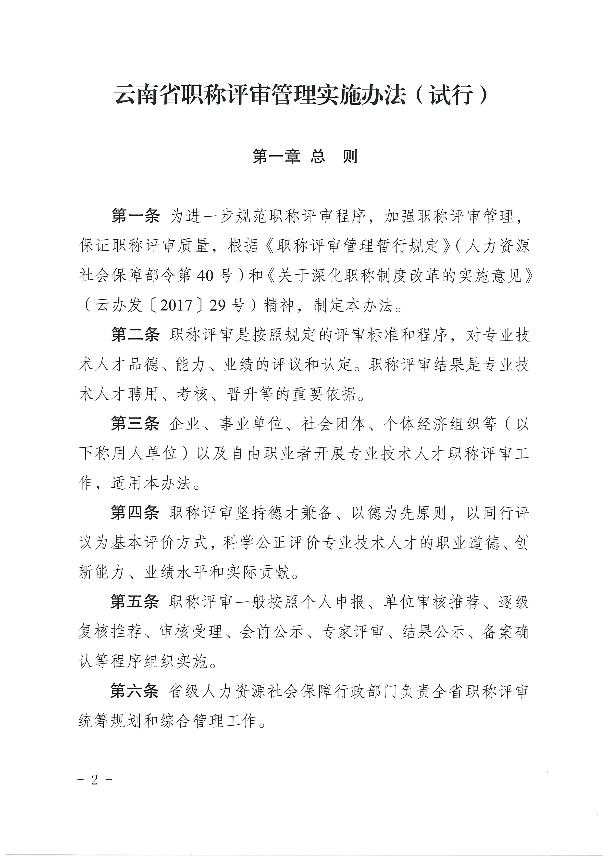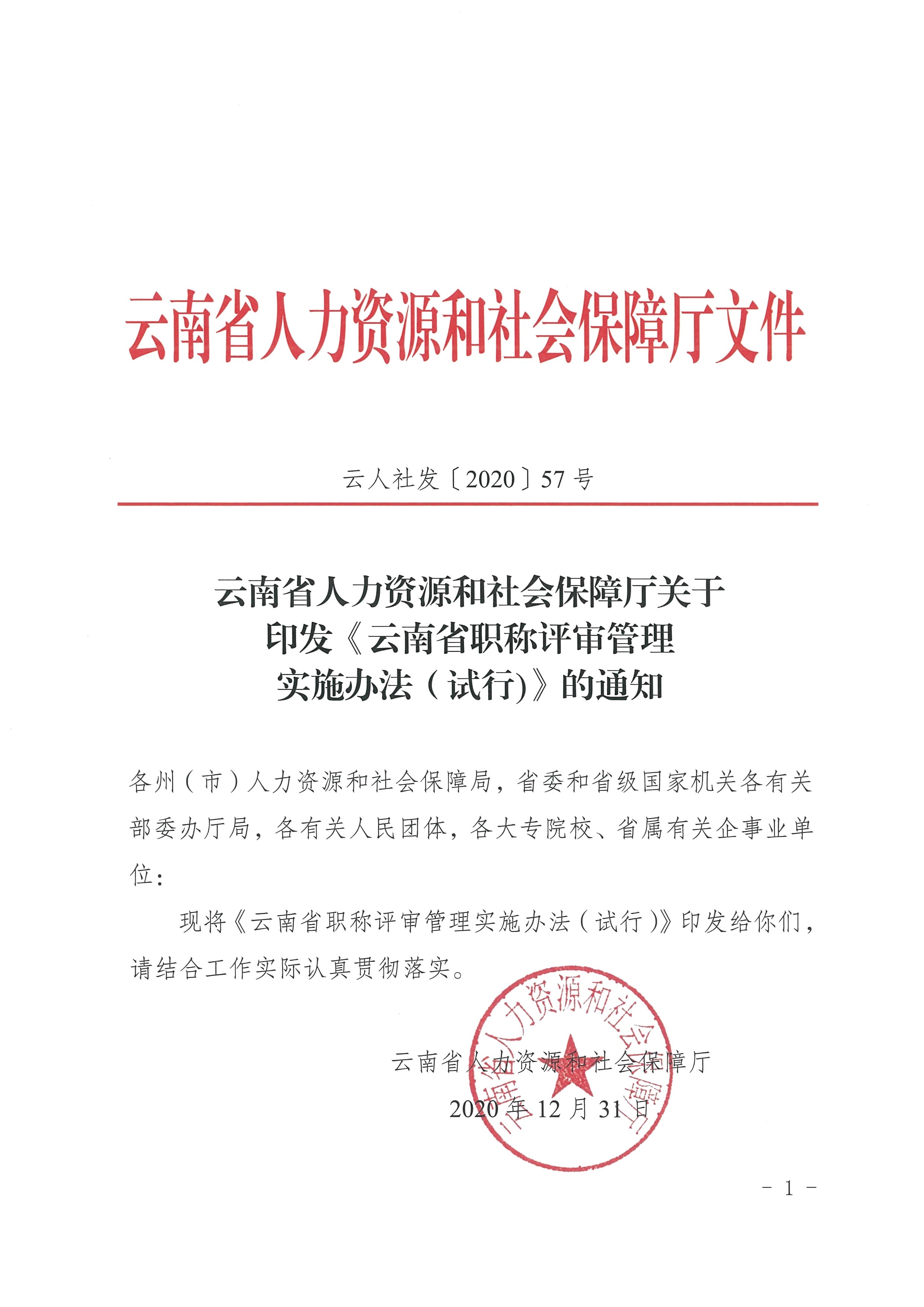 云南省人力資源和社會保障廳關于印發《云南省職稱評審管理實施辦法(試行)》的通知
