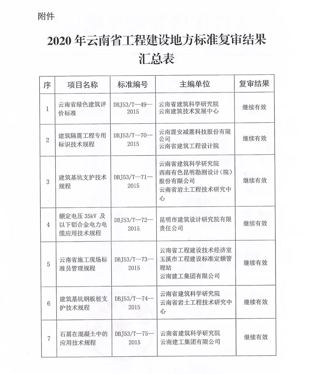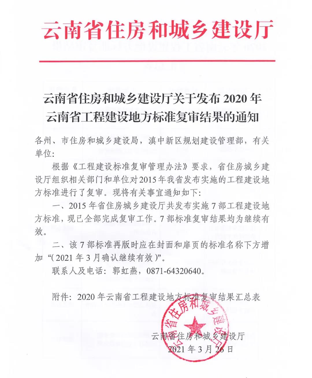 省住建廳關于發布2020年云南省工程建設地方標準復審結果的通知