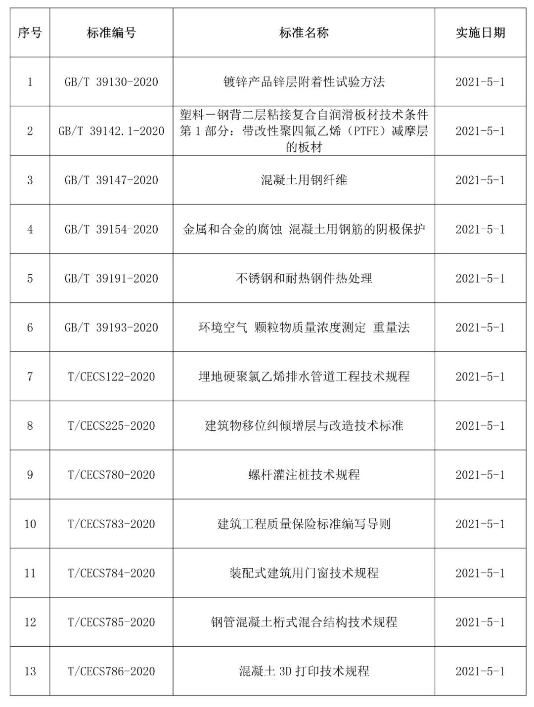 2021年5月開始實施的工程建設標準