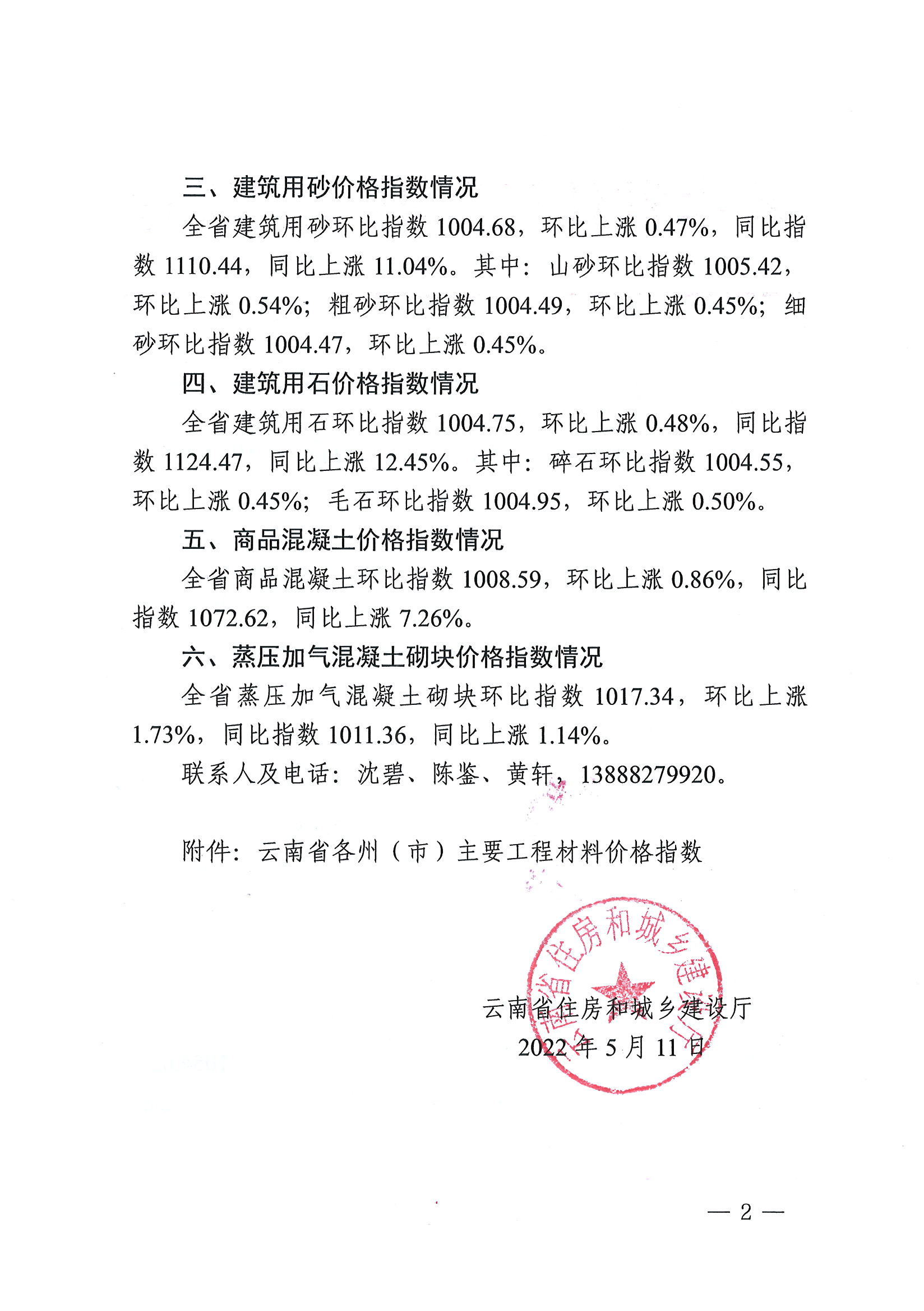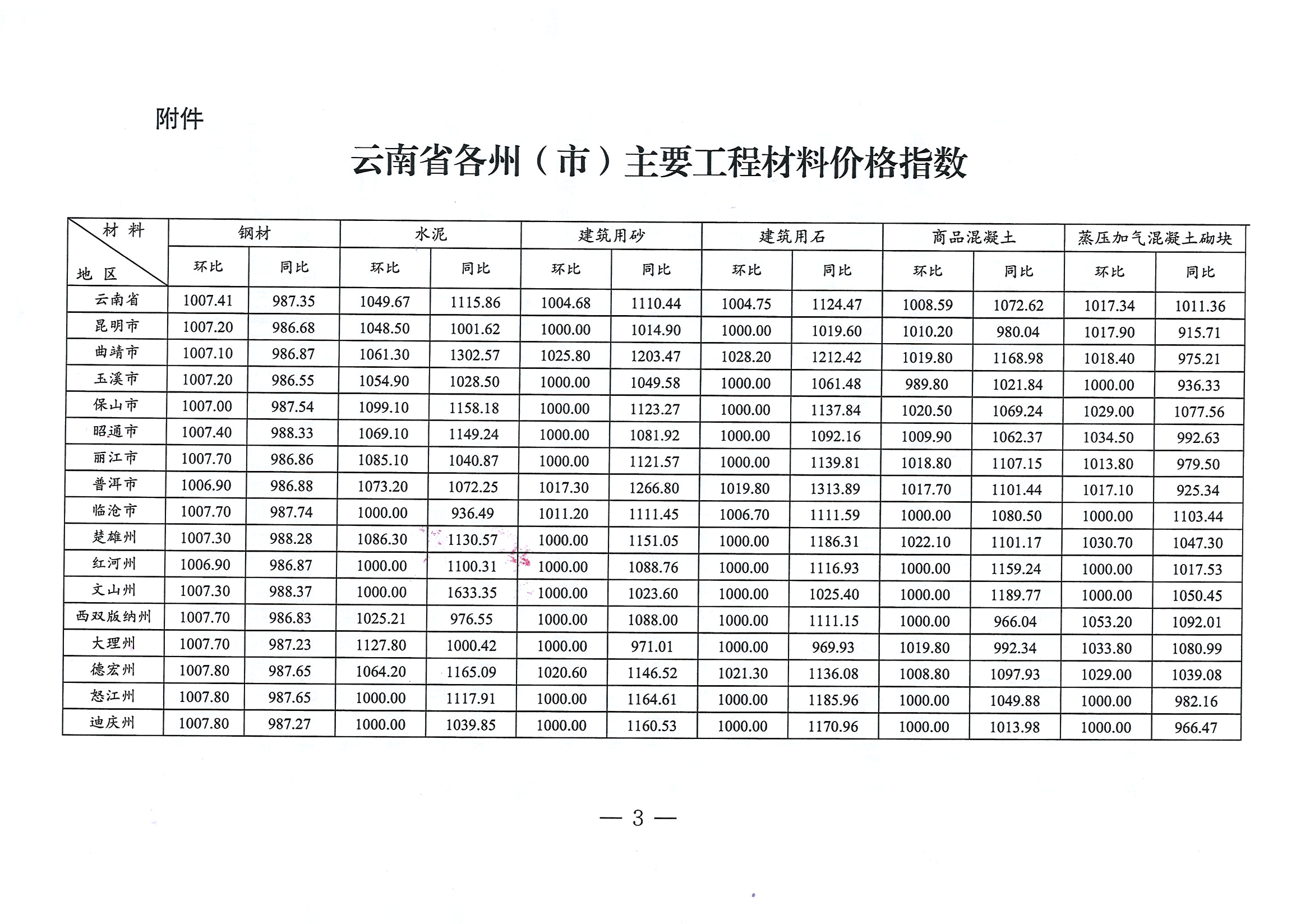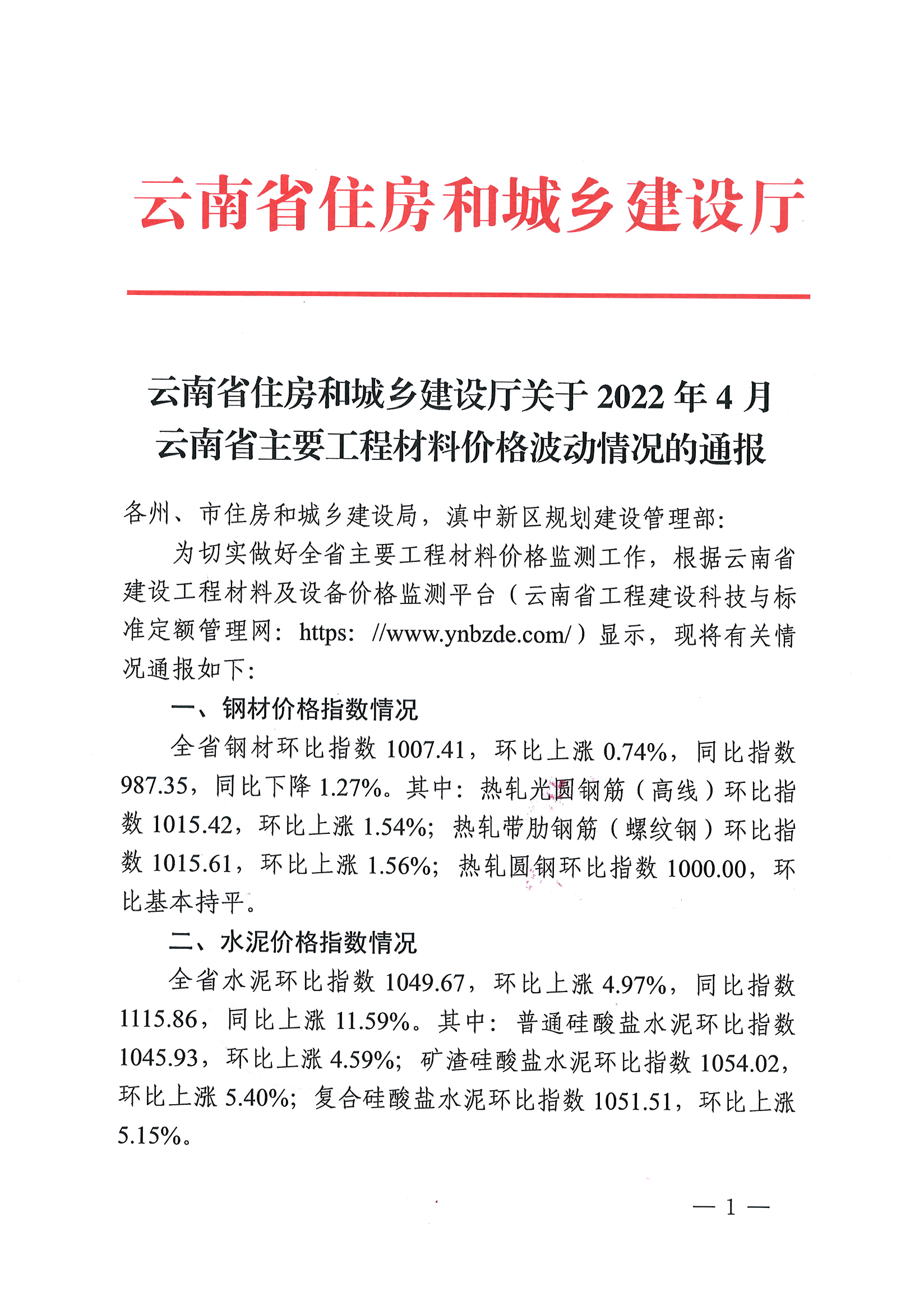 云南省住房和城鄉建設廳關于2022年4月云南省主要工程材料價格波動情況的通報