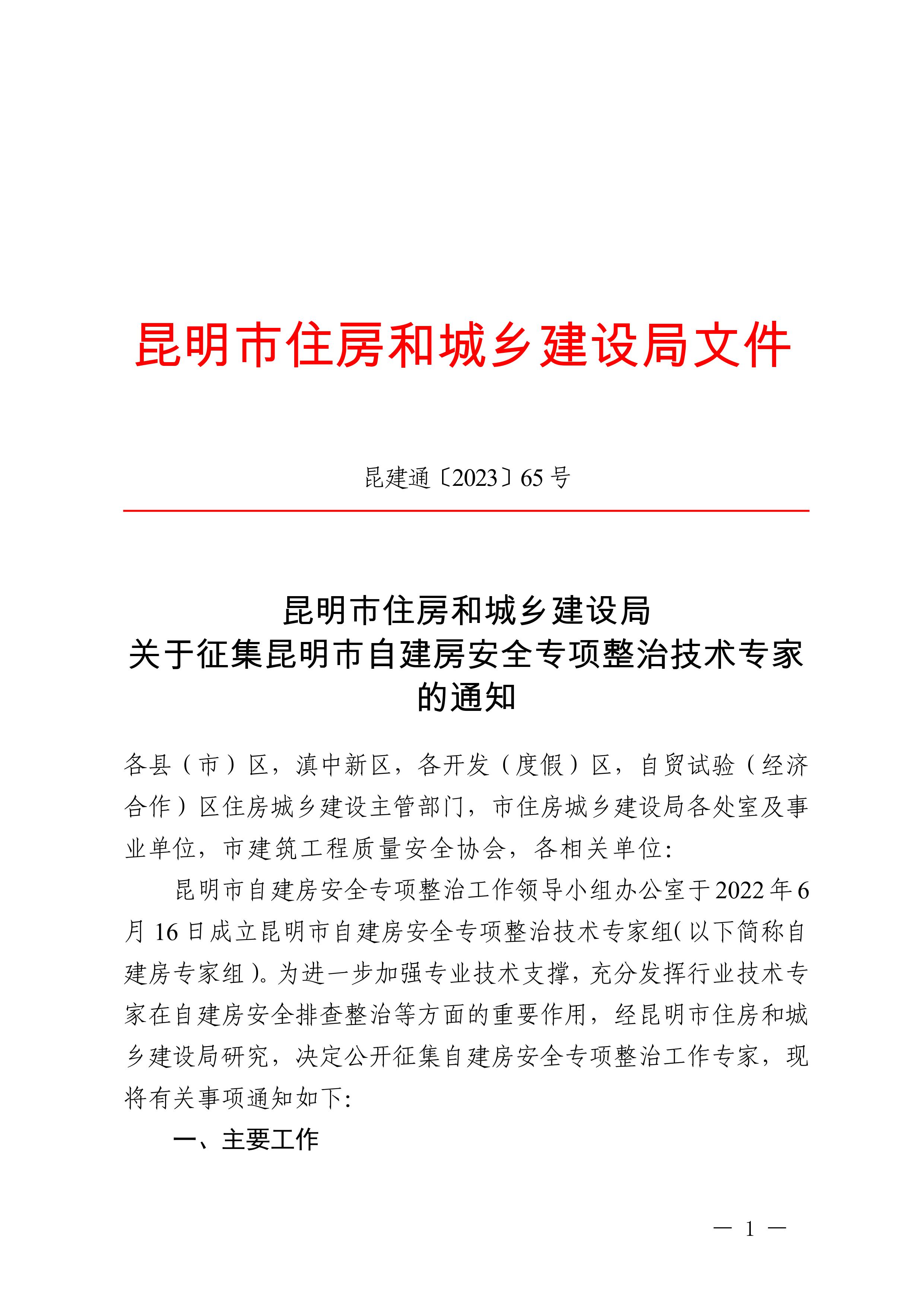昆明市住房和城鄉建設局關于征集昆明市自建房安全專項整治技術專家的通知