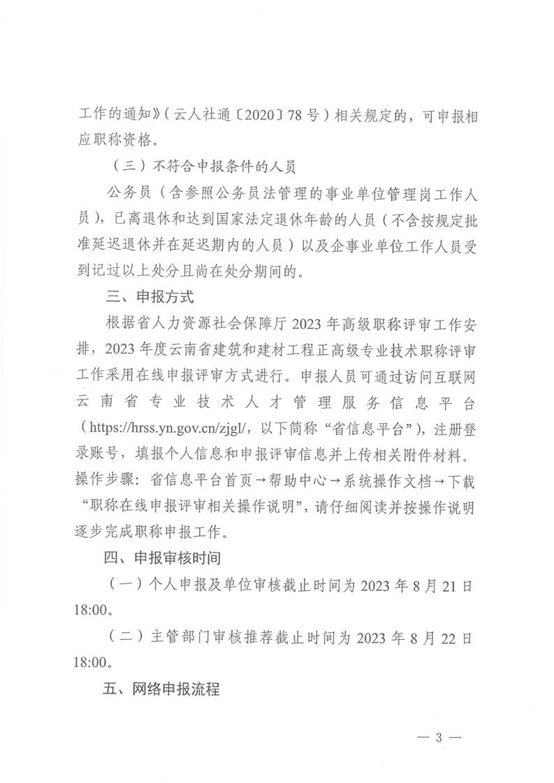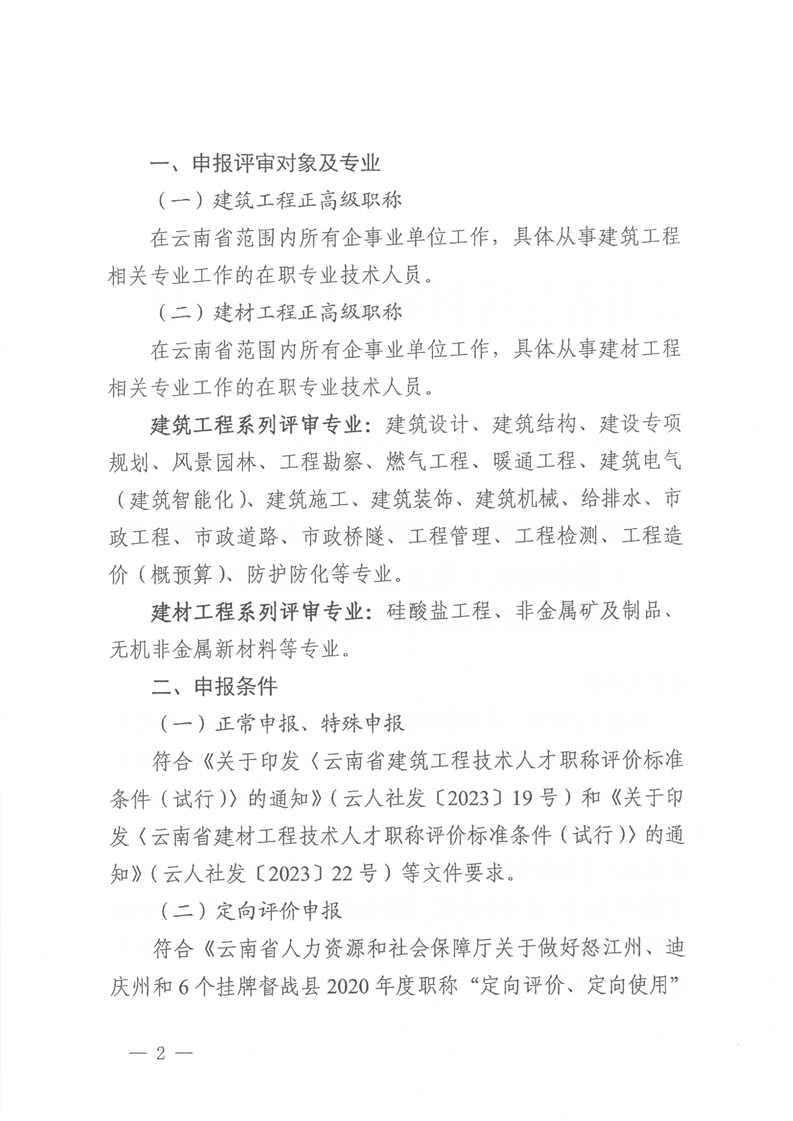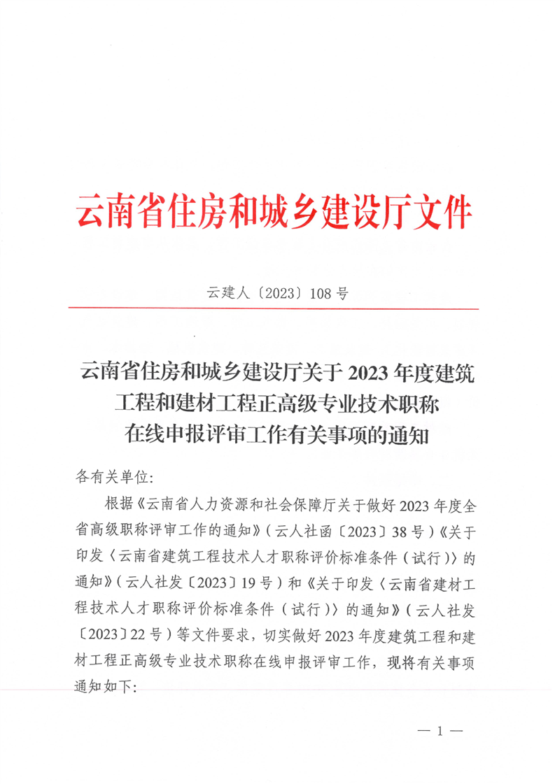云南省住房和城鄉建設廳關于2023年度建筑工程和建材工程正高級專業技術職稱在線申報有關事項的通知